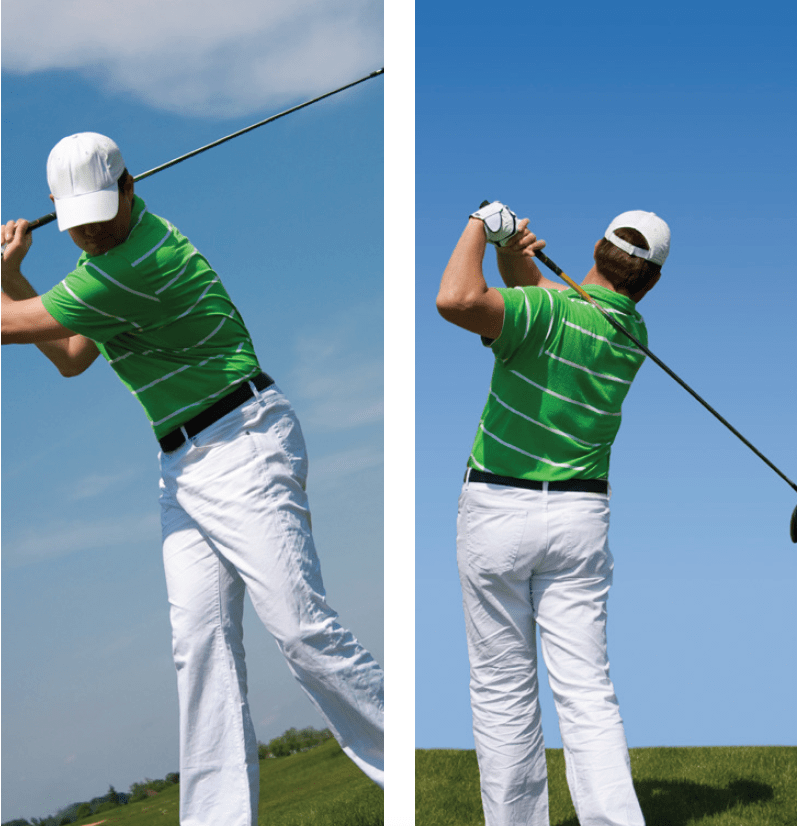 Bij het verplaatsen van je gewicht naar het been waarnaar je toe draait, is het die heup die de torsie draagt en niet de wervelkolom.