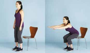 Laat de knieholten contact houden met de rand van de stoel of houd ze er zo dicht mogelijk tegen zodat je je knieën bijna niet naar voor laat komen. Probeer te gaan zitten zonder in de stoel te vallen.